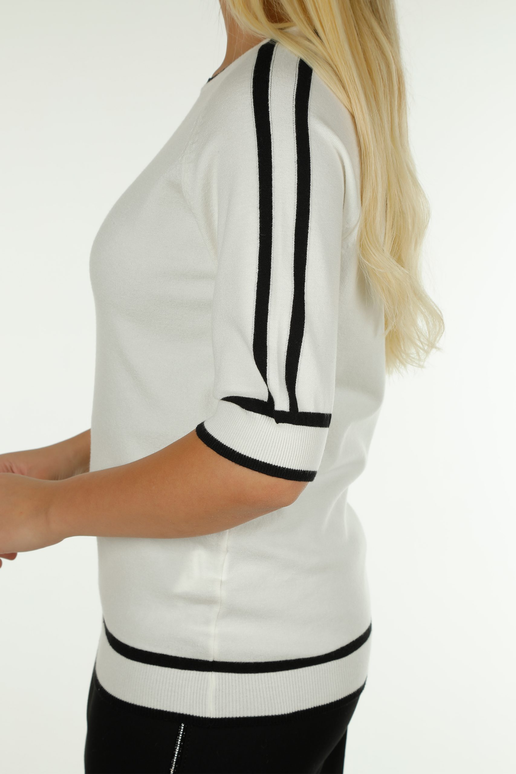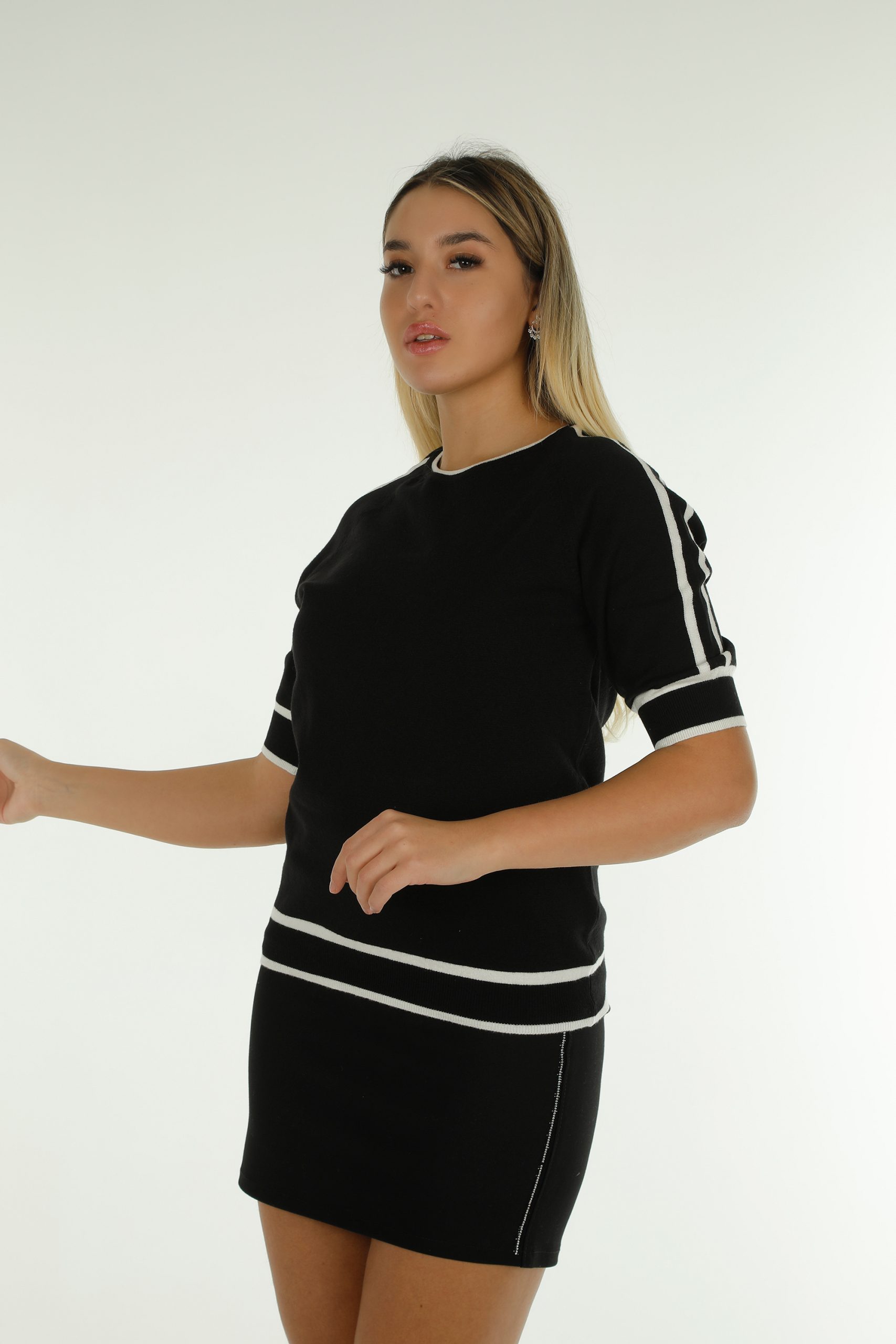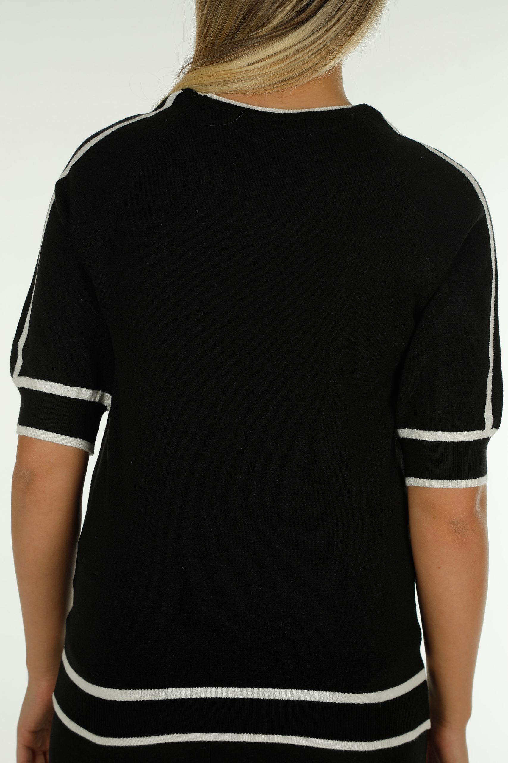 This refined top features subtle striped accents along the sleeves and hem, providing a sophisticated contrast to its bold colors. Perfect for any occasion, this tee pairs effortlessly with skirts or jeans, ensuring you stay stylish and comfortable all day long. Embrace the simplicity and versatility of the Forest Whisper Tee, a must-have addition to any fashion-forward collection.