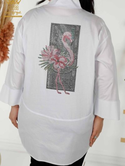Modern Elegance Flamingo Shirt with Rhinestone Details
