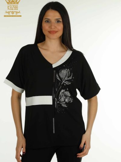 Rhinestones Palm Leaves Blouse